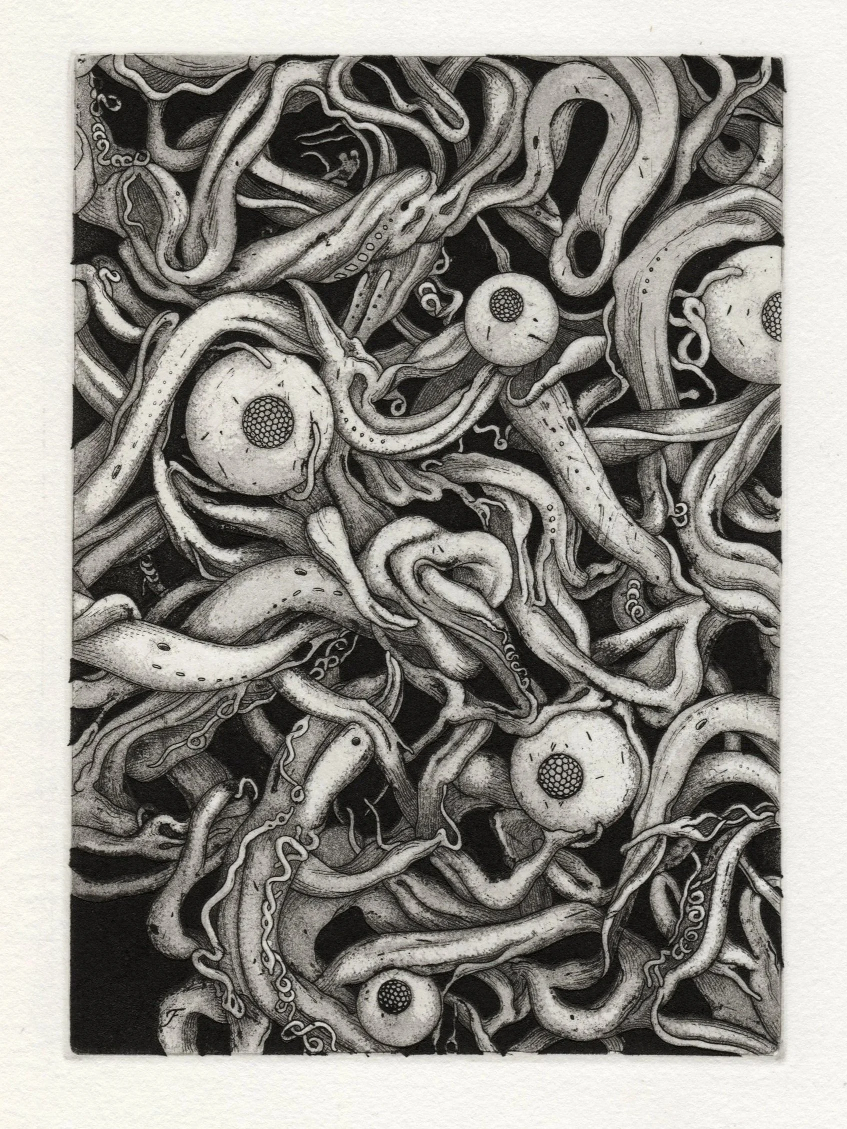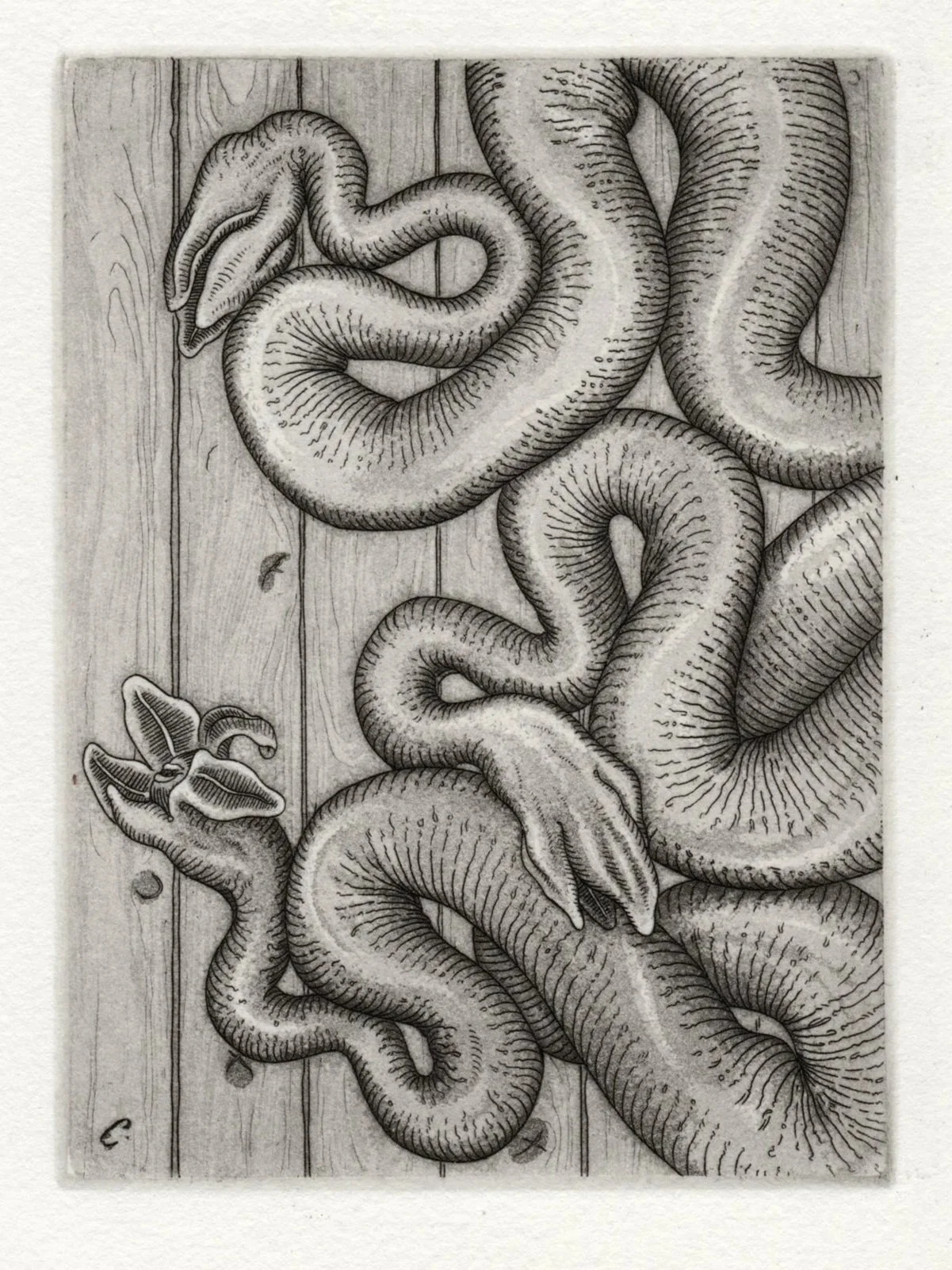 Edition of 50 numbered copies (+ six hors commerce) signed by the artist. Set in Bembo and Desdemona types, with chapter tailpieces created from Bodoni ornaments. Printed with the handpress on Barcham Green handmade papers. Aquatints printed by the artist on Arches wove. Issued in three states (visit link below). 8vo, 54 pages + prints. 2024
